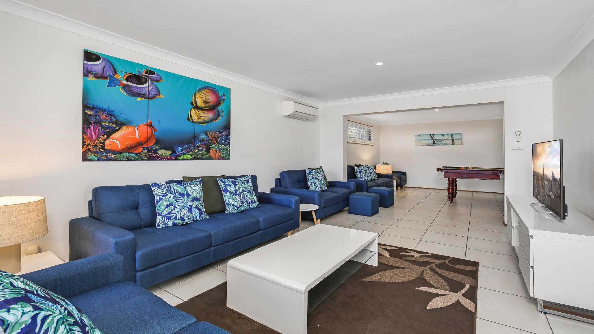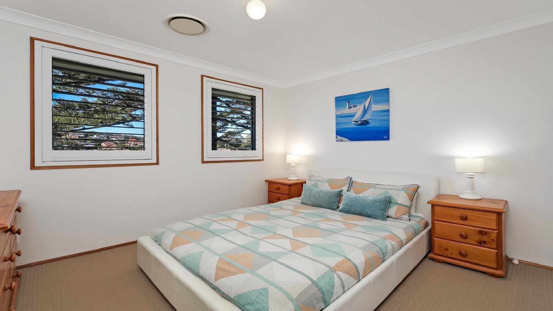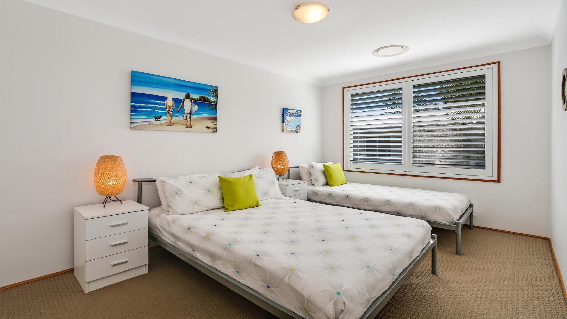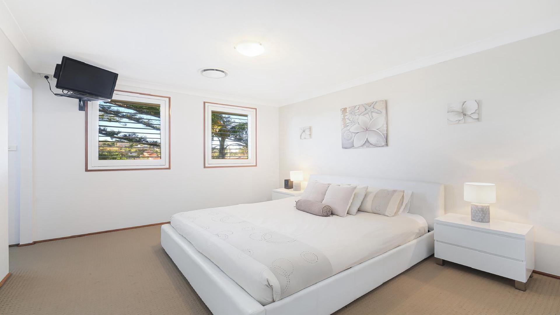 Pinetree Townhouse offers spacious and comfortable holiday accommodation for large family groups and pets in a sought after position of Terrigal. This bright and airy townhouse is just 500 metres from Terrigal beach and esplanade and is ideal for families and couple groups wanting an easy stroll to the sand or the lively esplanade, with its boutique shopping, cafes and restaurants. Pinetree Townhouse includes air conditioning, Foxtel, Netflix, Wi-Fi, a pool table, an outdoor entertaining space with BBQ and was recently refreshed with new furniture items, a new bathroom and plantation shutters throughout - perfect for letting in those fresh ocean breezes. Master bedroom with king bed, TV, walk-