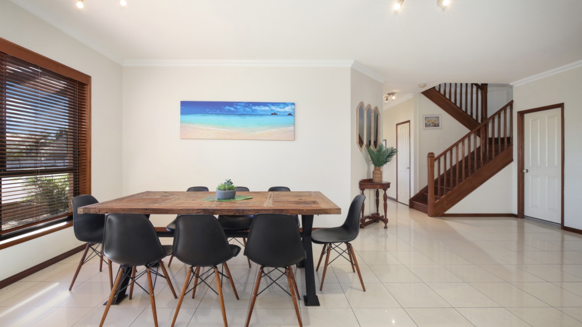 Bay View Beach House is a great family retreat just moments' walk to the stunning Blue Bay and Toowoon Bay Beach. This spacious home is thoughtfully equipped for great family holidays, with ample space for both kids and adults. Guests can sit back and relax in the patio, shoot a game of pool, or stroll around the corner to the Blue Bay store for a coffee. With the ocean literally at the end of the street, you can come and go from the beach or ocean pool with ease. Bay View Beach House is just minutes drive away from the vibrant and funky suburbs of Toowoon Bay & Long Jetty with the buzzing cafe and shopping scenes. The Entrance is an easy walk or short drive away also. Master bedroom contains king bed, ensuite and walk-in robe. Bedrooms 2 and 3 have double beds, while bedroom 4 has 2 single beds. There is an additional king bed downstairs opposite the pool room with a full bathroom situated across the hall.