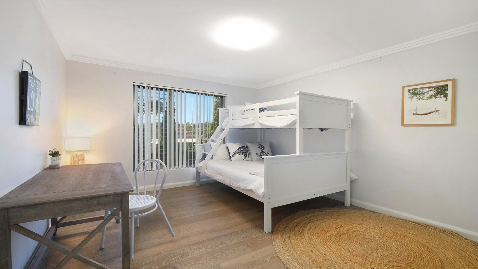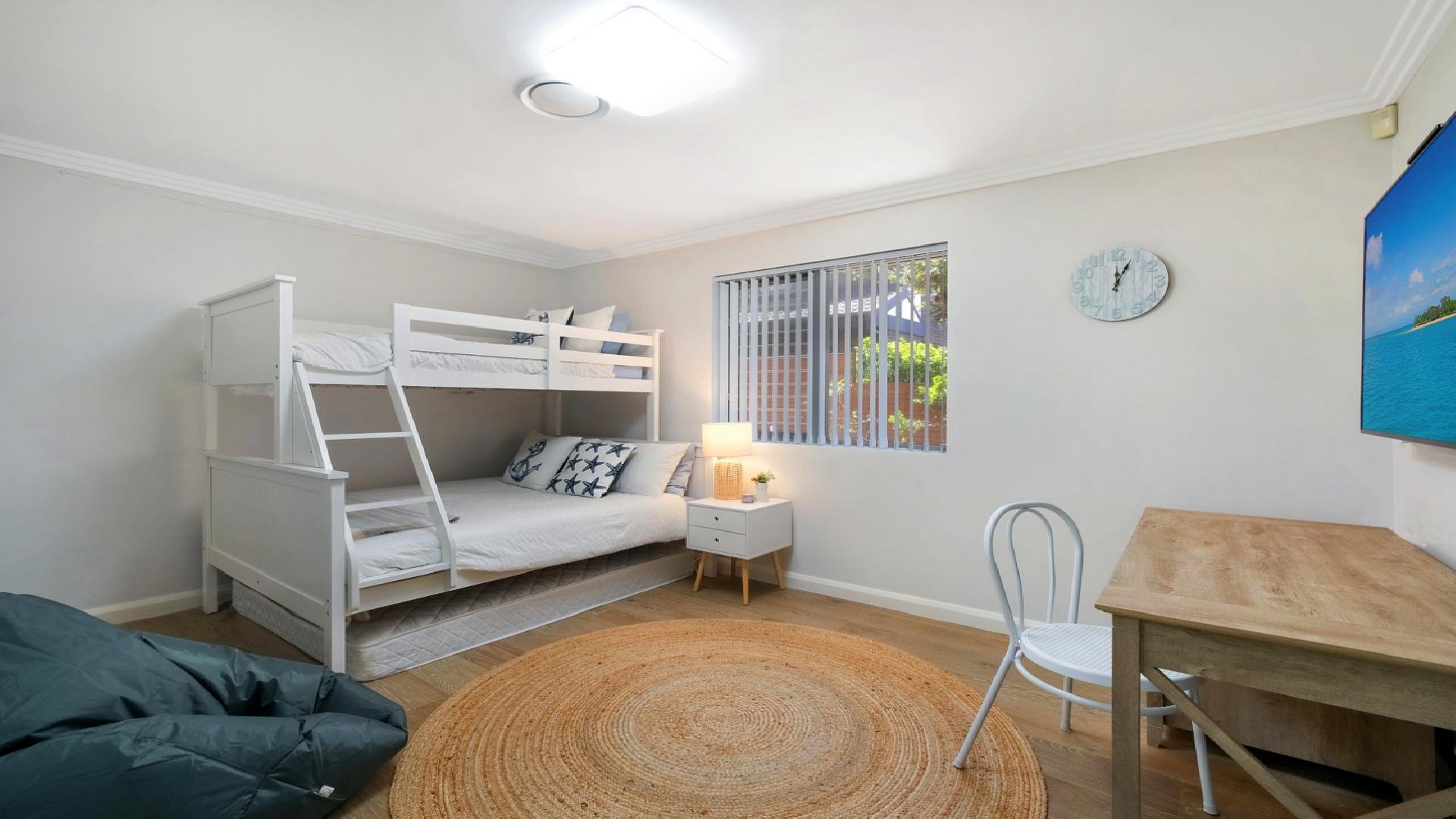 If you are seeking a spacious unit close to everything you need then Beach Haven is a great option. This apartment is a convenient 200 metre walk to Terrigal beach and esplanade and even offers some fun beach equipment for the family to use during their beach getaway. Modern and comfortable, Beach Haven offers bright and airy spaces which soak up the sunlight. Its large deck is ideal for outdoor entertaining. Beach Haven would best suit families and extended family groups. Master bedroom contains a queen bed with walk-in robe and ensuite with shower. Bedroom 2 contains a queen bed. Bedroom 3 has a tri-bunk bed and Smart TV. Bedroom 4 contain a tri-bunk bed.