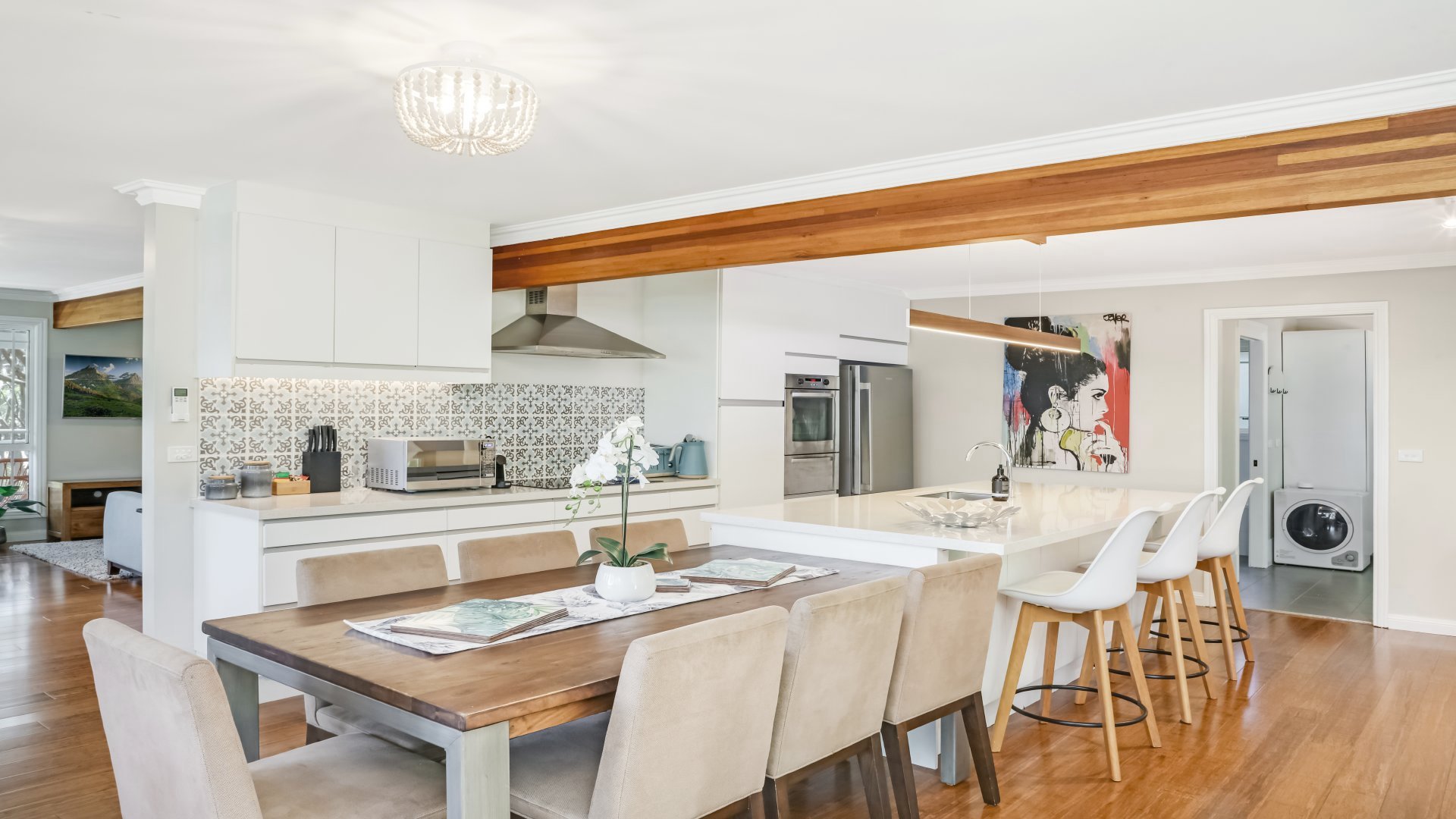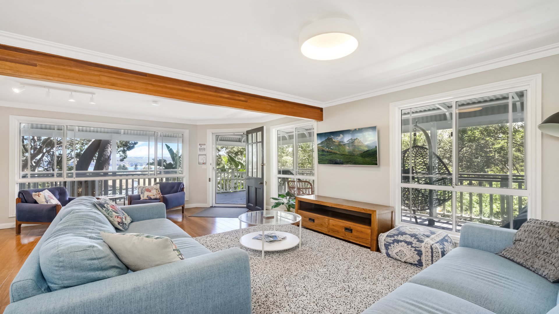 In addition there's a laundry with washer and dryer, fully equipped family-sized kitchen, separate dining and sizeable open plan living, where there is plenty of room for everyone, while the front veranda with views is the ideal place to kick back and unwind.