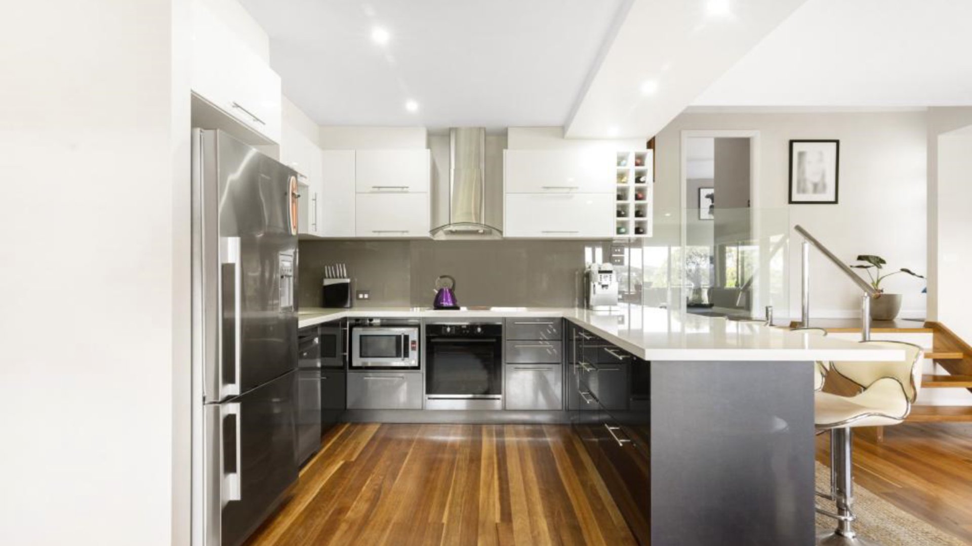 - Modern kitchen with stainless steel appliances