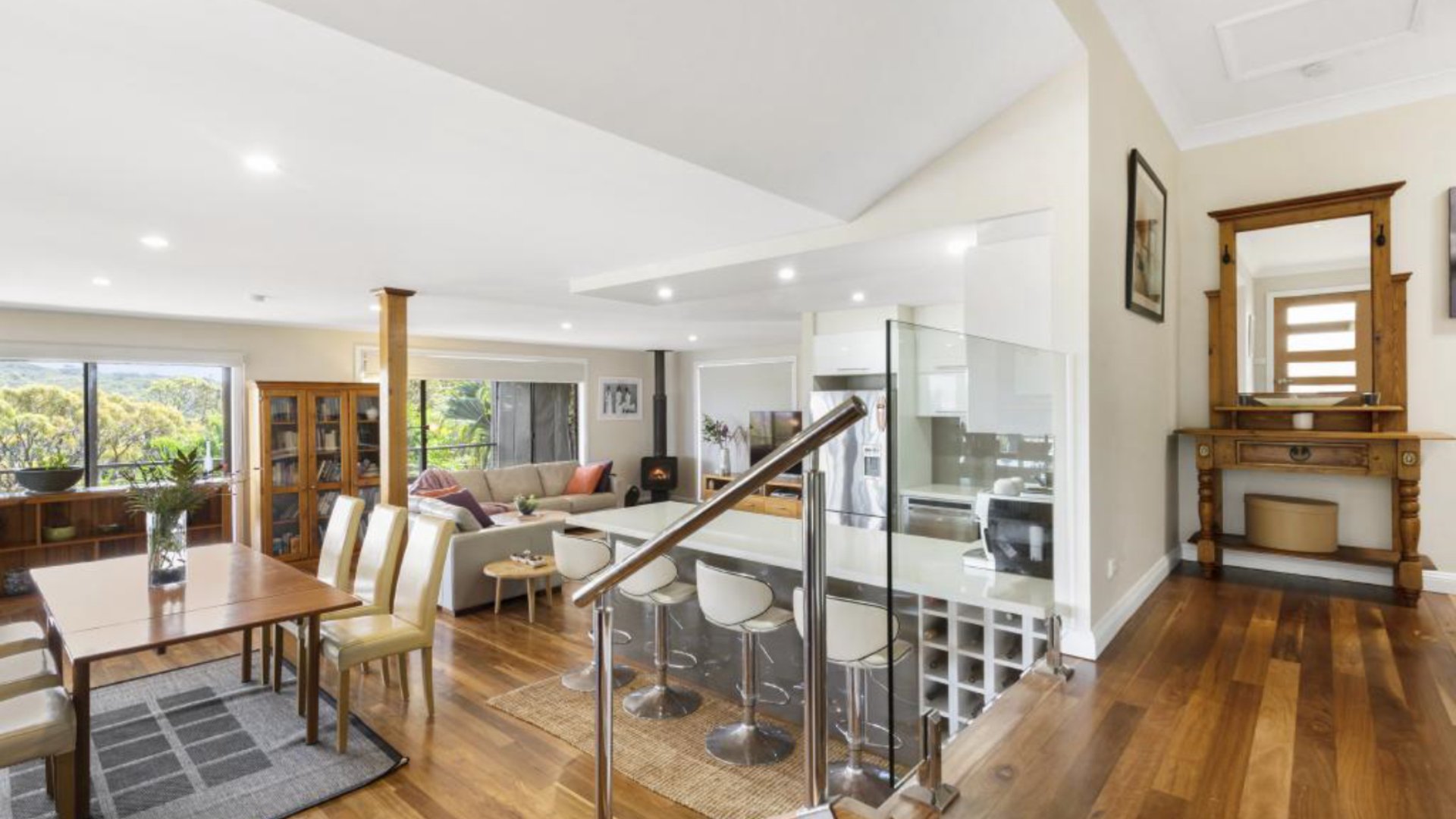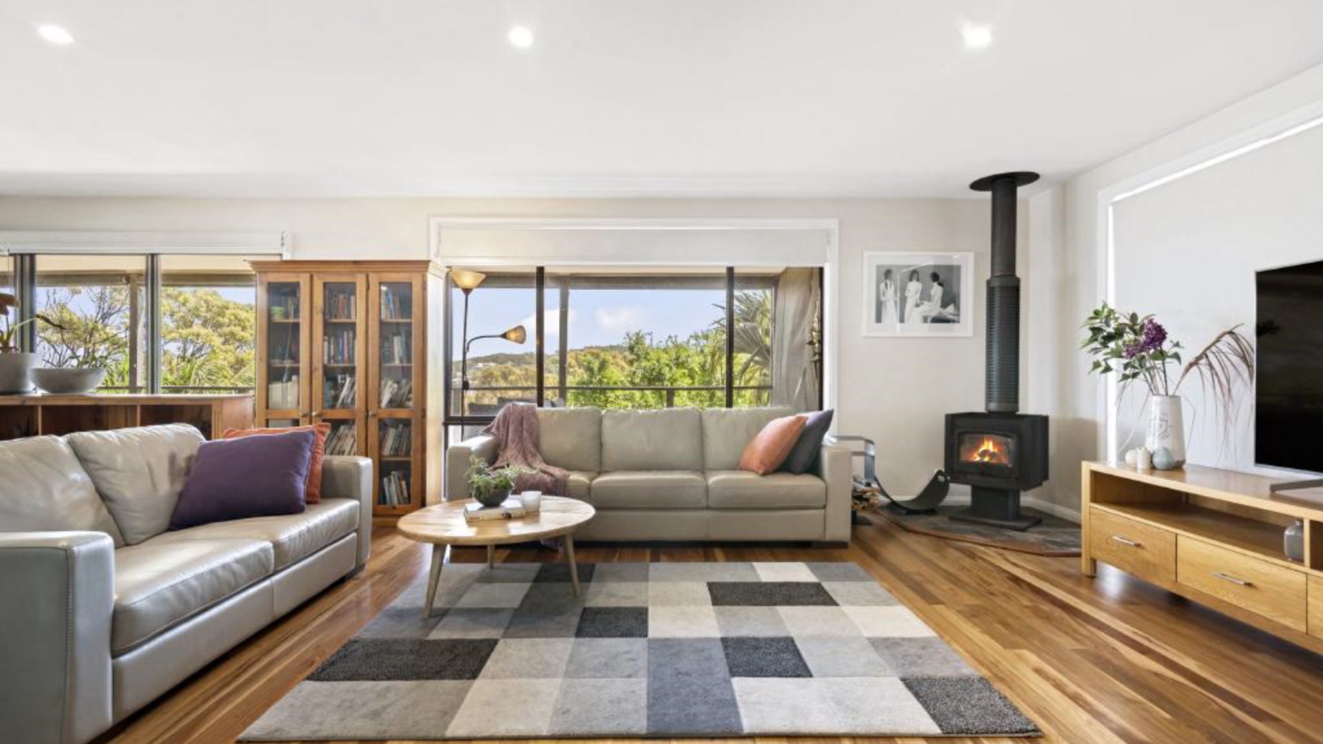 With a generous main living area with views from all sides, plus fully equipped gourmet electric kitchen with dishwasher & coffee machine which opens out to the dining and