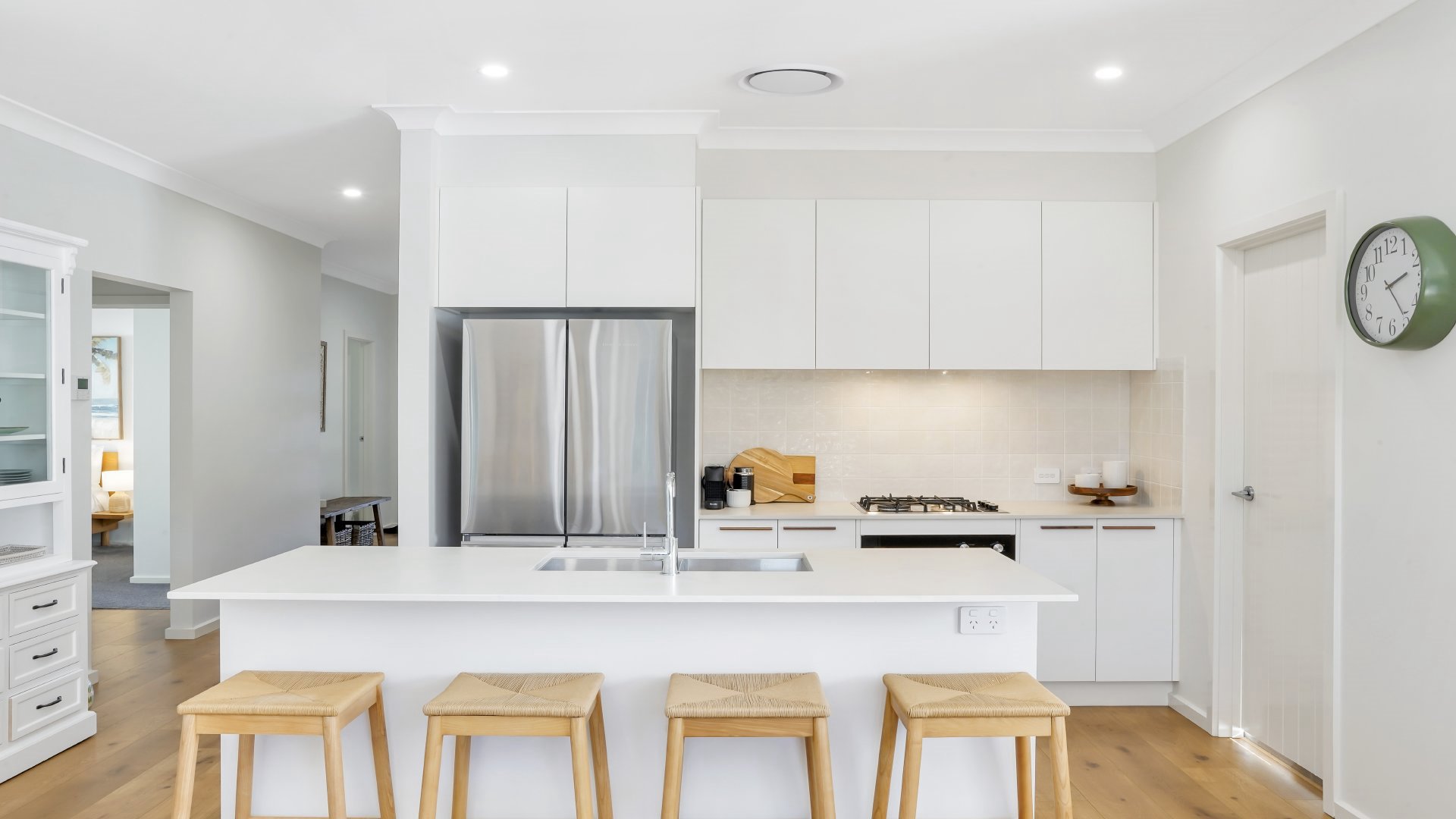 The kitchen flows into spacious indoor and outdoor living and dining areas, complete with a walk-in pantry, internal laundry and central air conditioning throughout. Enjoy a BBQ in