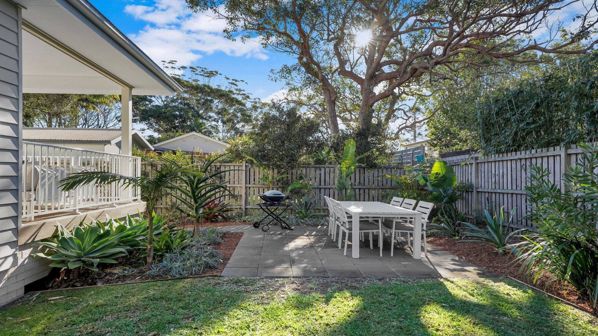 Designed with both style and comfort in mind The Beach Pad features four generous bedrooms with high ceilings and built-in robes, including a master bedroom with queen bed,