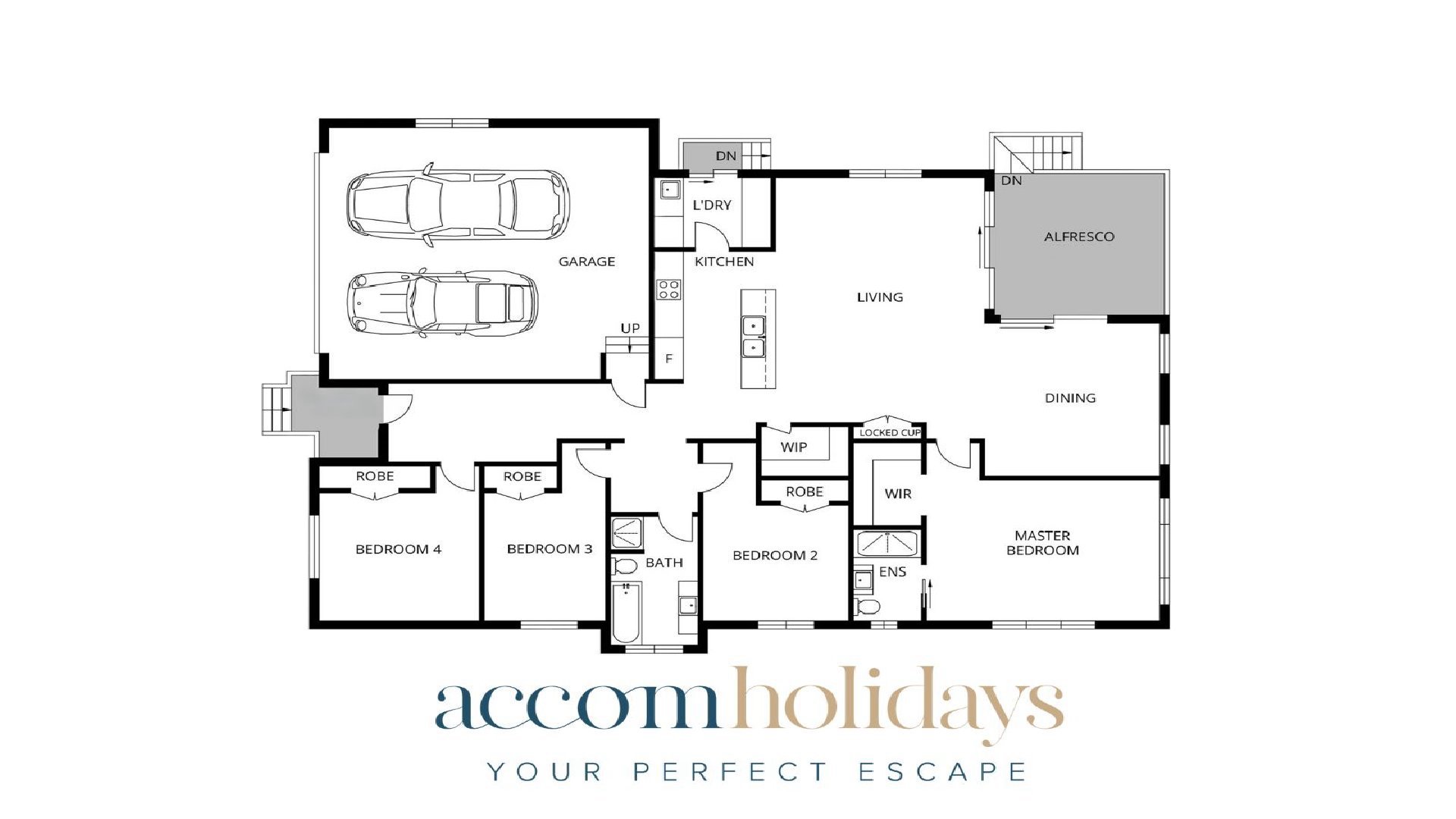 - Open plan living kitchen dining with smart TV, WIFI, ducted aircon