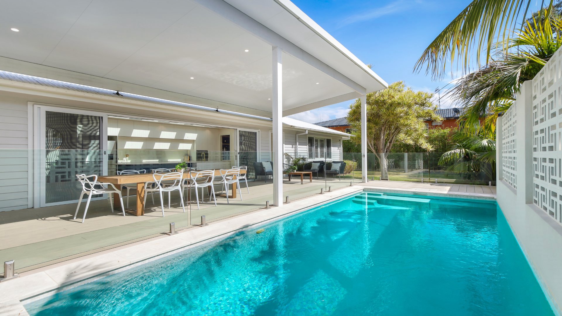 drenched outdoor area overlooking the sparkling pool. Approximately 200m from the beach, and with near by beach access to both Shelly and Bateau Bay beaches, this home
