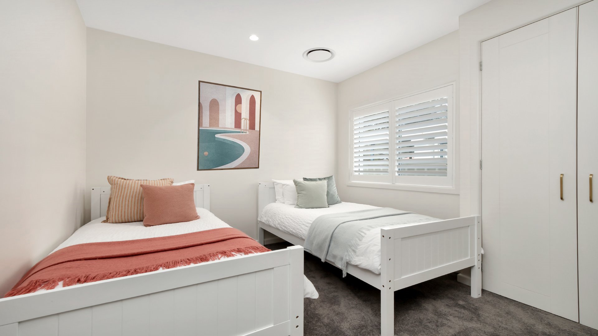 bedroom three provides two single beds perfect for children or friends. With beautifully appointed bathrooms, a media room, and inviting communal spaces, everyone can unwind